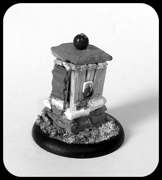 I also needed a replacement for the chimney. The most obvious option was to just build a more fantasy-looking chimney. However, I wanted her to stand much closer to the ground. It would have been cool if I could have put her on a small tree or a log. But the sculpt requires a very specific shape to stand on. After an afternoon of attempting to build some sort of small structure to fill the role, I ended up with this "hitching post + announcement board" thingy.
